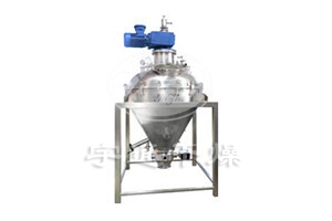 該設備主體立式靜止,內部加熱的螺帶進行圓周攪拌提升運動,物料進入干燥腔體后利用夾套和攪拌螺帶對物料接觸加熱,物料被螺帶有序的攪動,翻轉、提升、瀑落,使物料不斷的與加熱腔壁接觸而進行強制熱交換,受熱揮發的溶媒在真空狀態下被抽走,從而達到快速干燥的目的。